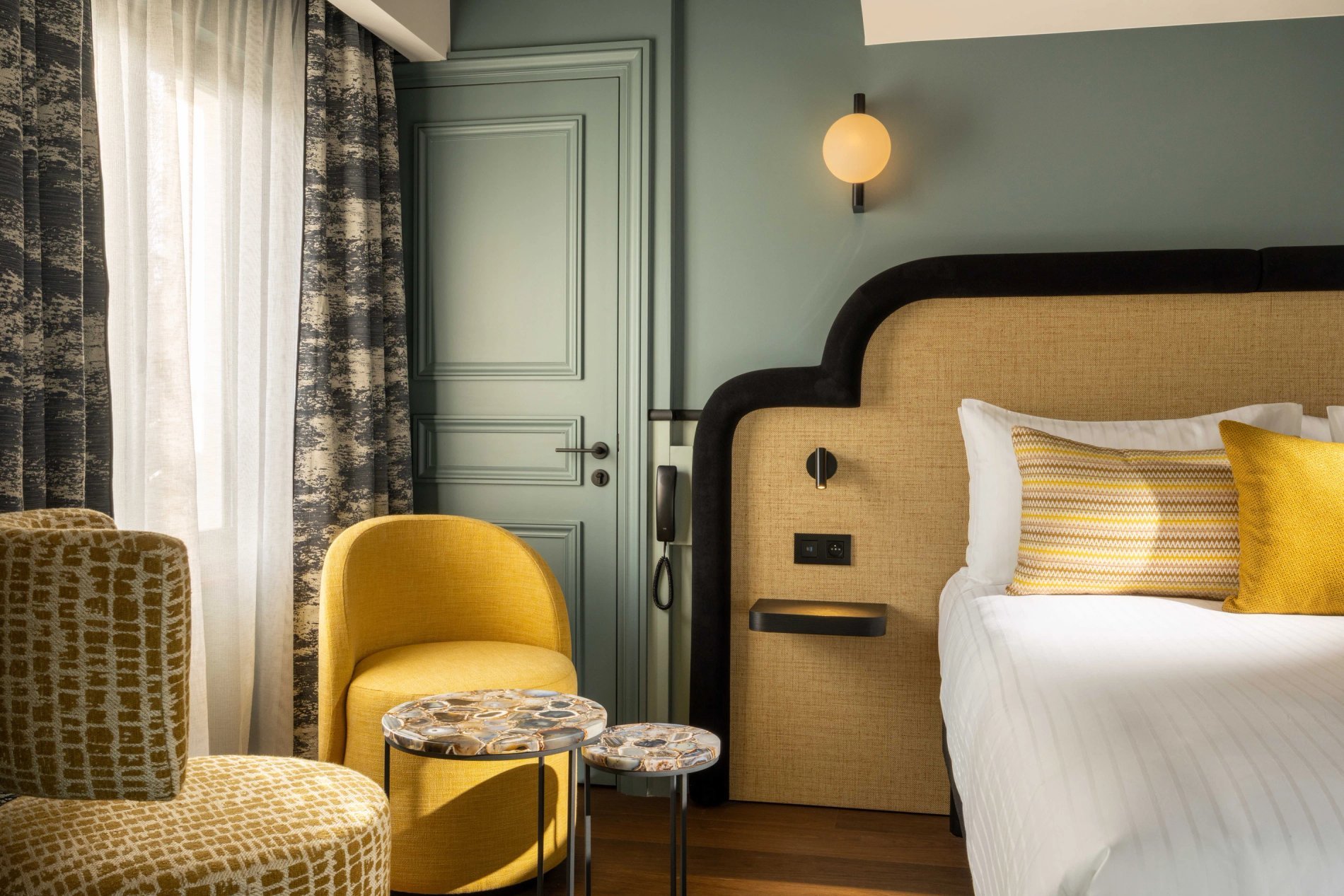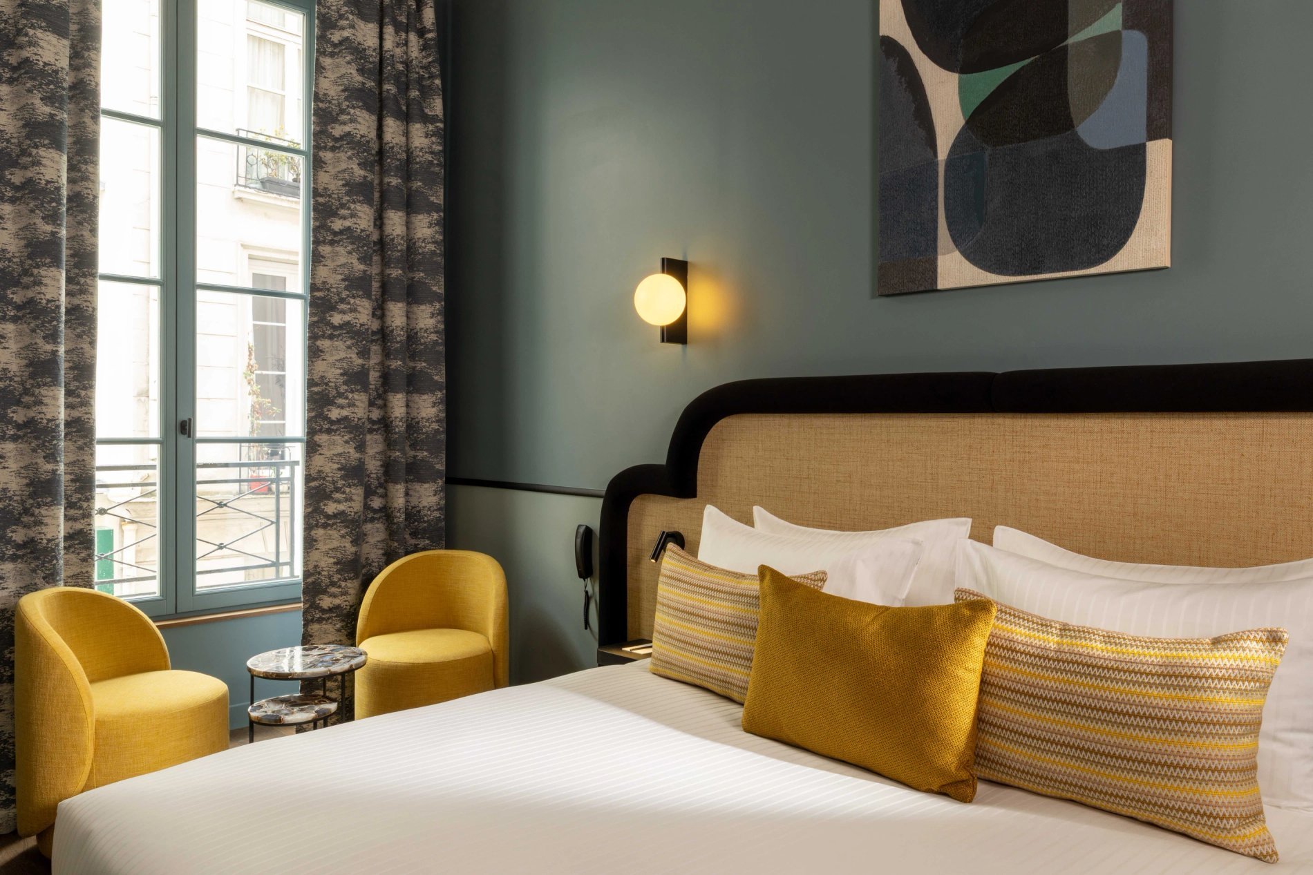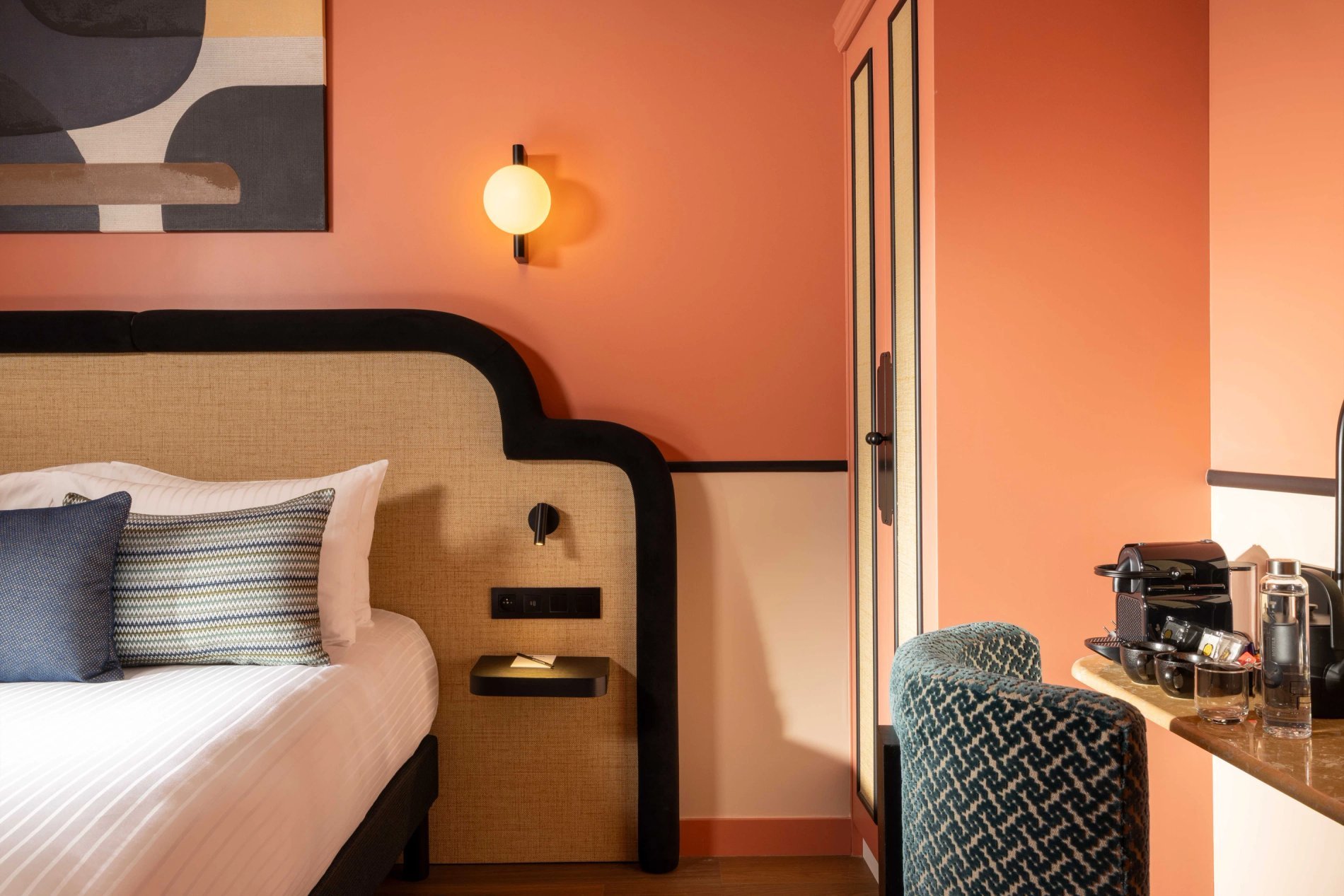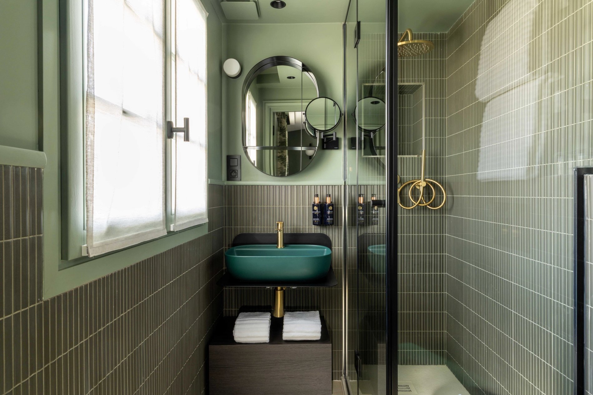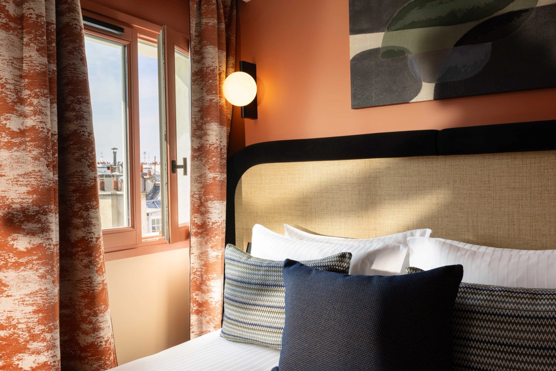 For your rest and serenity, the rooms are perfectly soundproofed and come in three colours to create a soft and refined atmosphere: Terracotta, Bleu de Nimes, or Vert Green Smoke.