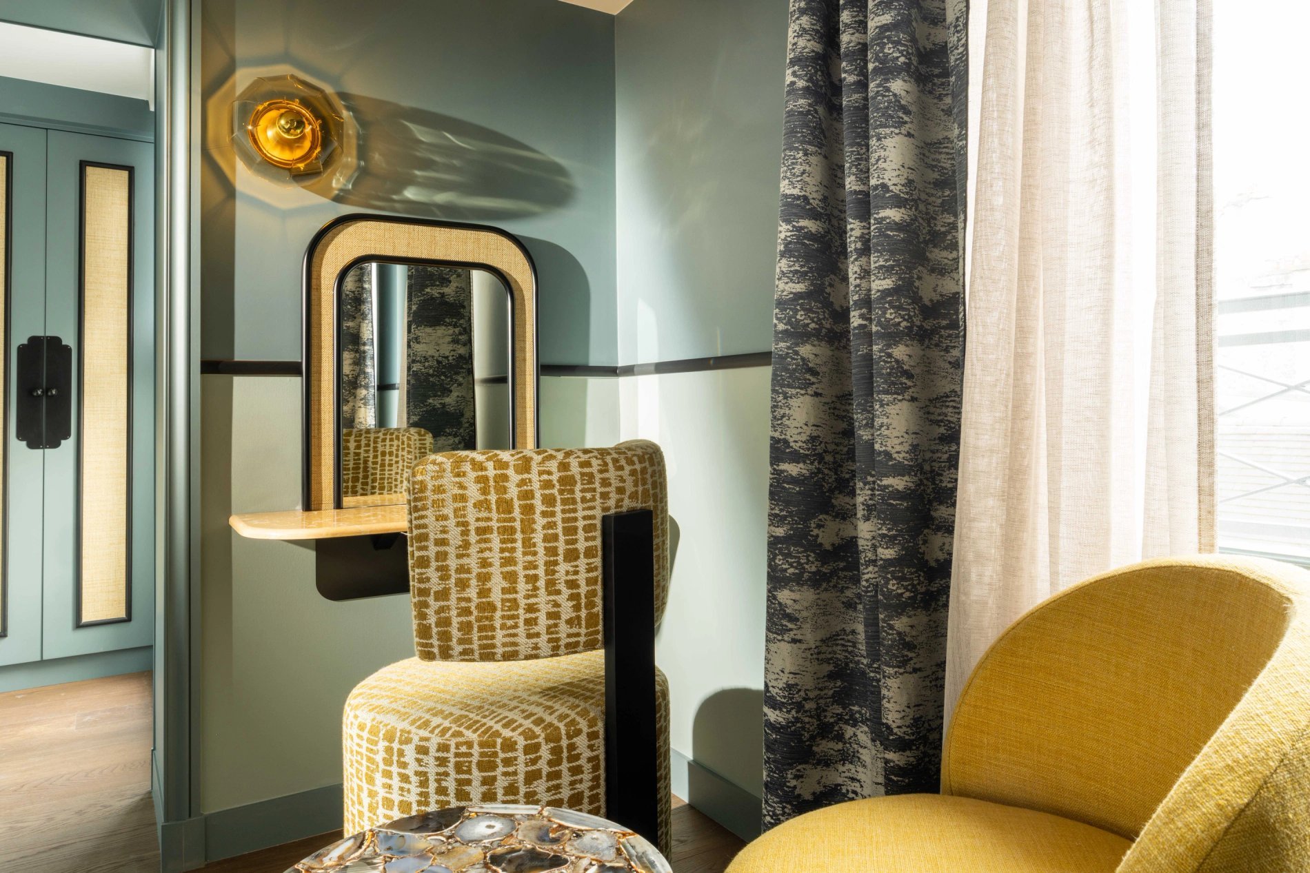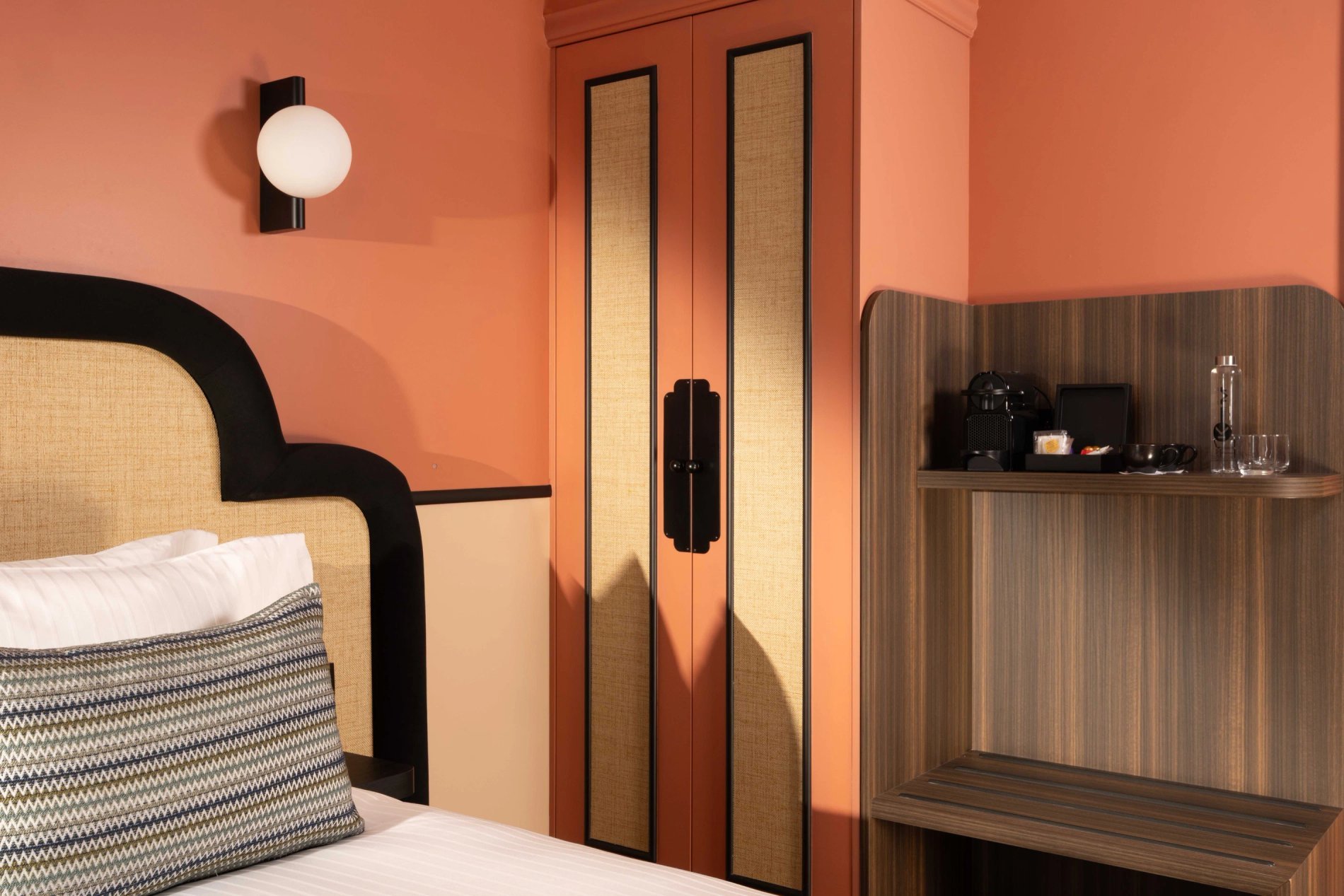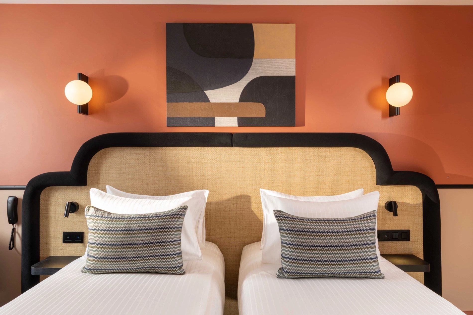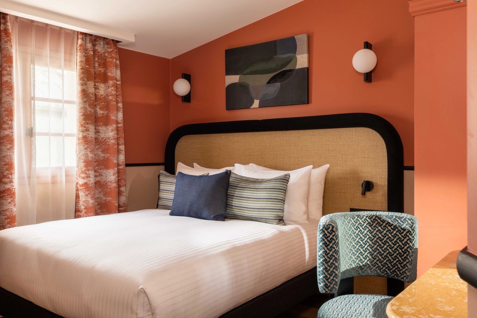 For your rest and serenity, the rooms are perfectly soundproofed and come in three colours to create a soft and refined atmosphere: Terracotta, Bleu de Nimes, or Vert Green Smoke.