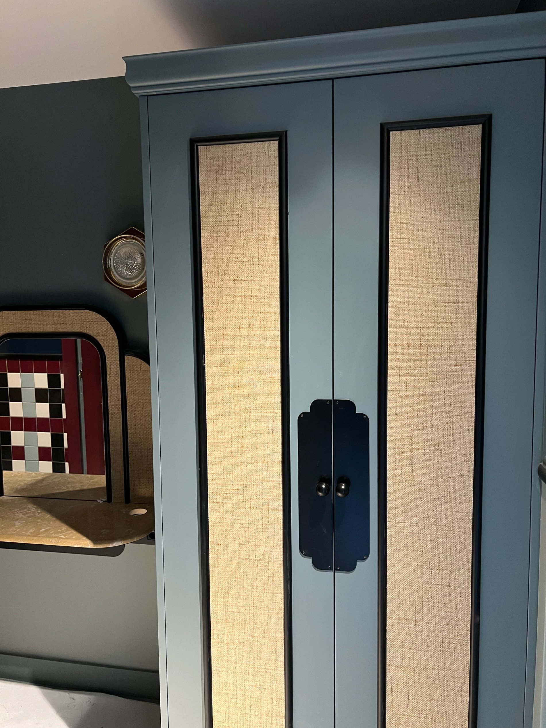La tête de lit et l’armoire, réalisées en cannage, donnent un style authentique, naturel et paisible.